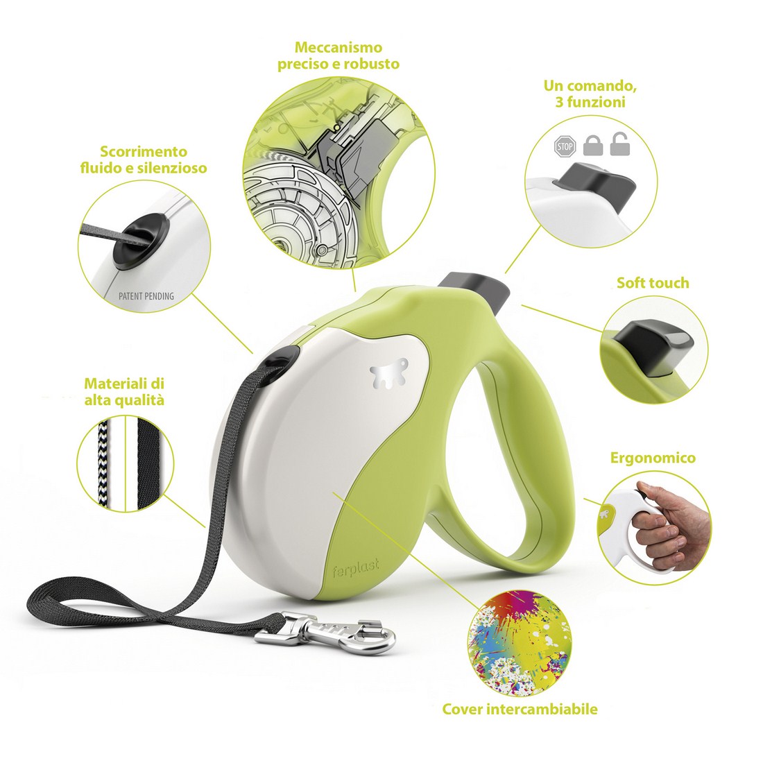 Amigo Ferplast ir jaunas siksnas ar vāciņu. Ar vienkāršu klikšķi, jūs varat nomainīt vāciņu, un ir nevainojams un moderns izskats.