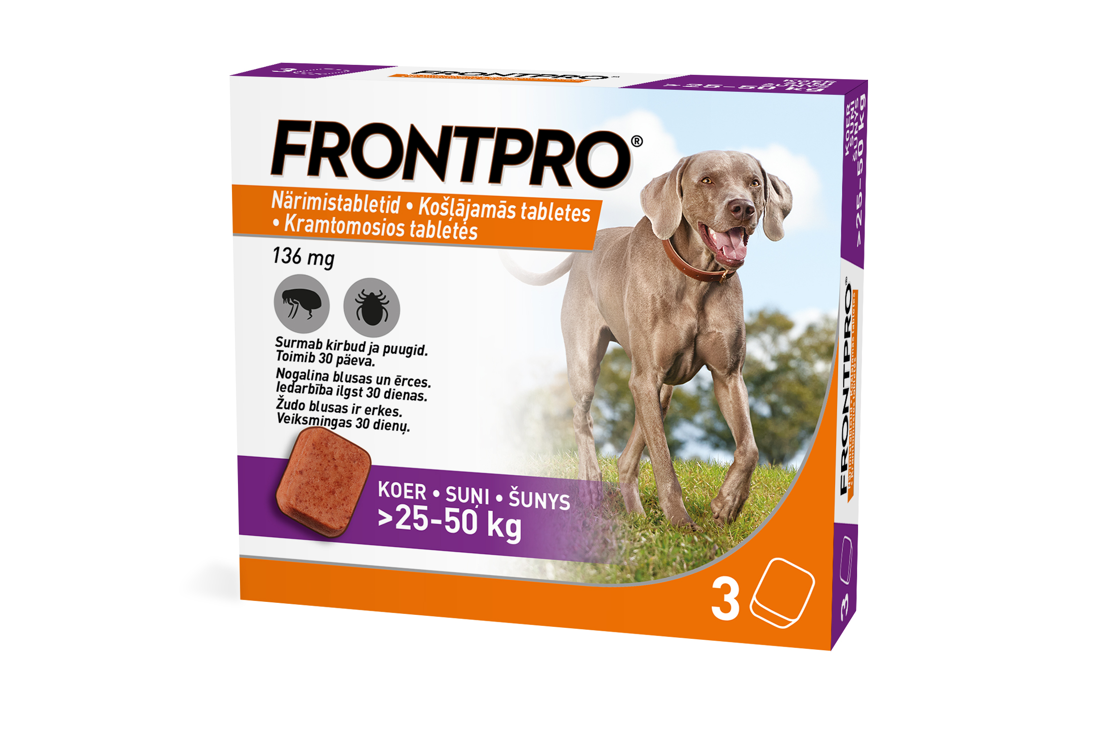 FRONTPRO 136mg Košļājamās tabletes N3 suņiem (>25-50KG) XL