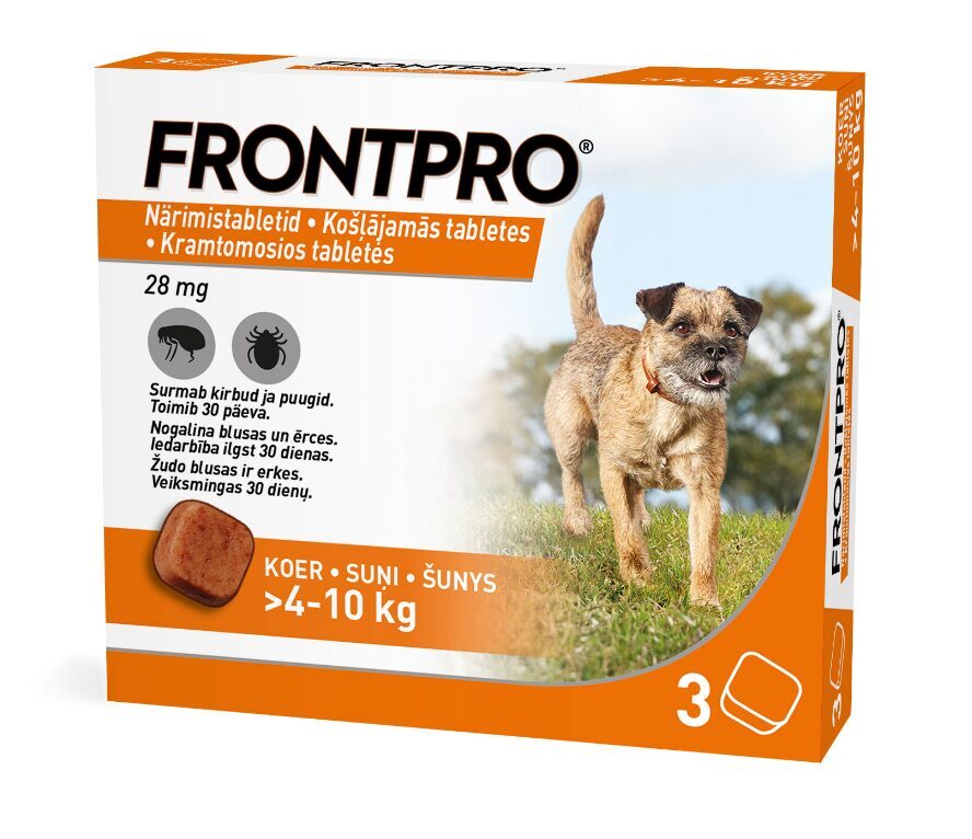 FRONTPRO 28mg Košļājamās tabletes N3 suņiem (>4-10KG) M