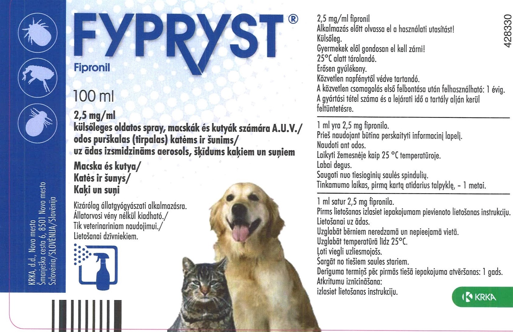 Fypryst 2,5 mg/ml uz ādas izsmidzināms pretparazitārs aerosols, šķīdums kaķiem un suņiem 100ml