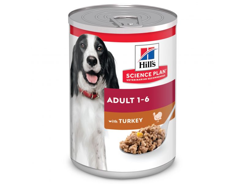 Science Plan Adult 1-6 ar tītaru (9%) Pilnvērtīga barība pieaugušiem suņiem no 1-6 gadu vecumam. SASTĀVS: Gaļa un dzīvnieku izcelsmes blakusprodukti (tītara gaļa 9%), graudaugi, minerālvielas, eļļas un tauki, augu izcelsmes blakusprodukti. ANALĪTISKIE KOMPONENTI: kopproteīns 5,5%, koptauki 4,4%, kokšķiedra 0,45%, koppelni 1,3%, mitrums 77,0%. Uzturfizioloģiskās piedevas uz kg: 3a672a (A vit.) 11187SV, E671 (D3 vit.) 205SV; 3b103 (dzelzs) 10,0mg, 3b202 (jods) 0,3mg, 3b405 (varš) 1,7mg, 3b503 (mangāns) 2,2mg, 3b603 (cinks) 25,7mg. DEVAS: diennakts devu nosaka pēc tabulas uz iepakojuma, piemērojot to dzīvnieka izmēram un uzturot dzīvnieka optimālo svaru. Vienmēr jābūt pieejamam svaigam dzeramajam ūdenim. Neatvērtus konservus nedrīkst uzglabāt zem 10⁰C. Pēc atvēršanas uzglabāt ledusskapī. Iepakojums: 370g bundža.