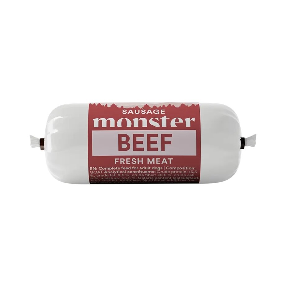 Sastāvs: Liellopu muskuļu gaļa 97%, augu izcelsmes blakusprodukti, vitamīni un minerālvielas, antioksidanti (citronskābe), karagināns 0,2%.