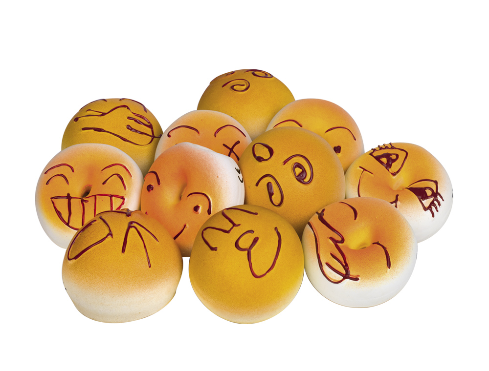Lateksa rotaļlietai ir cepumu forma. Apaļie (Ø 6 cm) ir ar pildījumu un aprīkoti ar balsi.