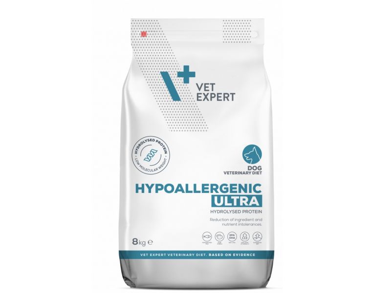 Pilnvērtīga diētiskā barība pieaugušiem suņiem sastāvdaļu un barības vielu nepanesības mazināšanai. Ieteicama arī ādas funkcijas veicināšanai dermatozes un pārmērīgas apmatojuma izkrišanas gadījumos. Barība satur vienīgo proteīna avotu zemas molekulmasas hidrolizētu zivju veidā un kartupeļu cieti ar augstu proteīna daudzumu kā vienīgo cietes avotu. Augstais Omega-3 taukskābju saturs veicina pareizu ādas funkciju. Norādījumi par pareizu lietošanu: Diētiskā barība nodrošina ikdienas uztura prasības pieaugušam sunim. Ieteicamā dienas deva norādīta tabulā uz iepakojuma. Pirms lietošanas vai lietošanas ilguma pagarināšanas ieteicams konsultēties ar veterinārārstu. Ieteicamais lietošanas ilgums: dermatozes un pārmērīgas apmatojuma izkrišanas gadījumā - sākumā 2 mēneši, barības nepanesības vai alerģijas gadījumā - no 3 līdz 8 nedēļām; ja nepanesības pazīmes pazūd, šo barību sākotnēji var lietot līdz vienam gadam. Vienmēr jābūt pieejamam svaigam dzeramajam ūdenim. Sastāvdaļas: hidrolizēts zivju proteīns (30%), kartupeļu ciete, batāšu ciete, zivju eļļa, saulespuķu eļļa, dikalcija fosfāts, kālija karbonāts, cigoriņu sakne, alus raugs. Proteīna avots: hidrolizēta zivs. Ogļhidrātu avots: kartupeļu ciete, batāšu ciete. Uzturfizioloģiskās piedevas uz kg: Vitamīni: A vitamīns (3a672a) 24000IU, D3 vitamīns (3a671) 1320IU, E vitamīns (3a700) 720mg, B1 vitamīns (3a820) 9,60mg, B2 vitamīns (3a825ii) 60mg, B6 vitamīns (3a831) 60mg; B12 vitamīns 0,12mg, niacīnamīds (3a315) 168mg, biotīns (3a880) 9,60mg, folijskābe (3a316) 2,40mg, kalcija D-pantotenāts (3a841) 60mg, C vitamīns (3a300) 180mg, beta-karotīns (3a160(a)) 60mg, holīna hlorīds (3a890) 2500mg. Mikroelementi: cinks (metionīna hidroksianaloga cinka helāts) (3b6.10) 120mg, mangāns (metionīna hidroksianaloga mangāna helāts) (3b5.10) 30mg, dzelzs (dzelzs (II) aminoskābju hidrāta helāts) (3b106) 120mg, varš (metionīna hidroksianaloga vara helāts) (3b4.10) 12mg, selēns (3b8.12) 0,50mg. Aminoskābes: DL-metionīns (3c301) 3000mg, taurīns (3a370) 1000mg, L-karnitīns (3a910) 500mg. Tehnoloģiskās piedevas: antioksidanti: no augu eļļas iegūts tokoferola ekstrakts (1b306(i)) 100mg. Analītiskie komponenti: kopproteīns 22,00%, koptauki 14,00%, mitrums 8,00%, kopšķiedra 1,70%, koppelni 7,20%, kalcijs 1,20%, fosfors 0,90%, nātrijs 0,20%, kālijs 0,55%, magnijs 0,70%, Omega-6 1,60%, Omega-3 2,10%, DHA 1,00%, EPA 0,70%, EPA+DHA 1,70%, linolskābe (LA) 1,50%. Metabolizējamā enerģija: 3800kcal/kg; 16MJ/kg.