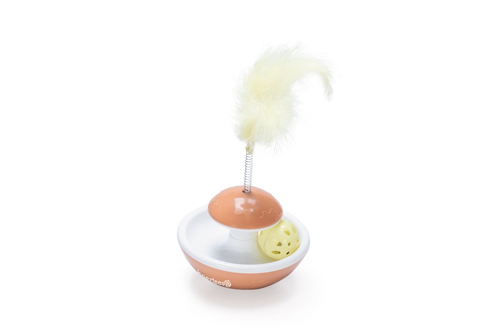 Beeztees Kitten Tumbler Toeloes ir jautra un interaktīva rotaļlieta, kas nodrošina jūsu kaķēnam izklaidi stundām ilgi. Kad kaķēns sit pa spalvām vai mēģina noķert rotējošo bumbiņu ar zvaniņu, rotaļlieta sāk kustēties. Pateicoties tās izliektajai pamatnei, tā nepārtraukti šūpojas uz priekšu un atpakaļ, piesaistot kaķēna uzmanību un veicinot aktīvu rotaļu.