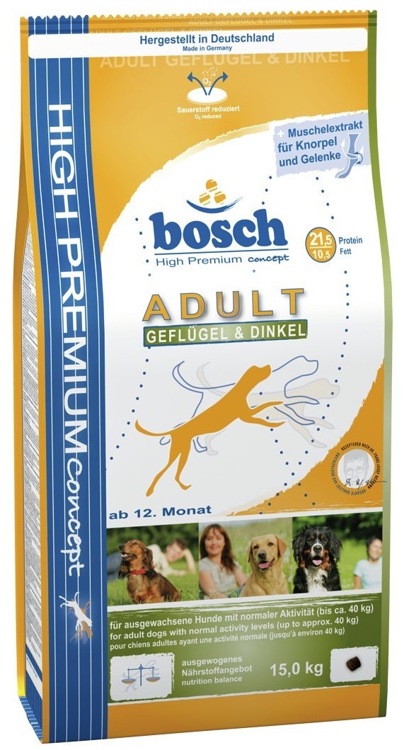 BOSCH Adult Poultry & Spelt - sausā barība suņiem 15kg