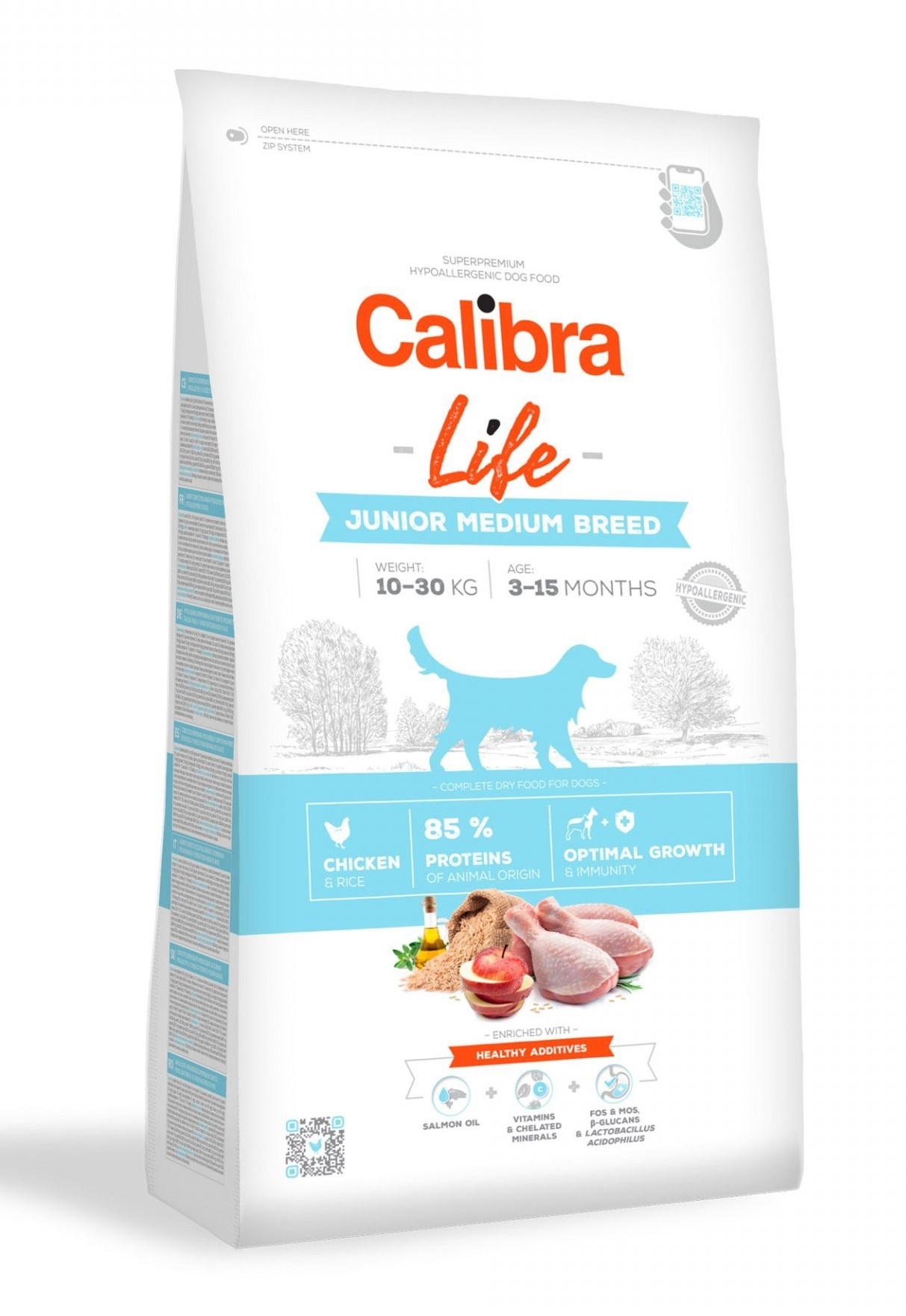 Calibra Dog Life JUNIOR MEDIUM Chicken - sausā barība suņiem 12kg