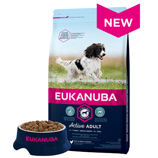 Kompleksā sausā barība ar vistas gaļu vidēja lieluma šķirņu pieaugušiem suņiem (11-25kg) no 1 līdz 7 gadiem. Normālam fiziskās aktivitātes līmenim.