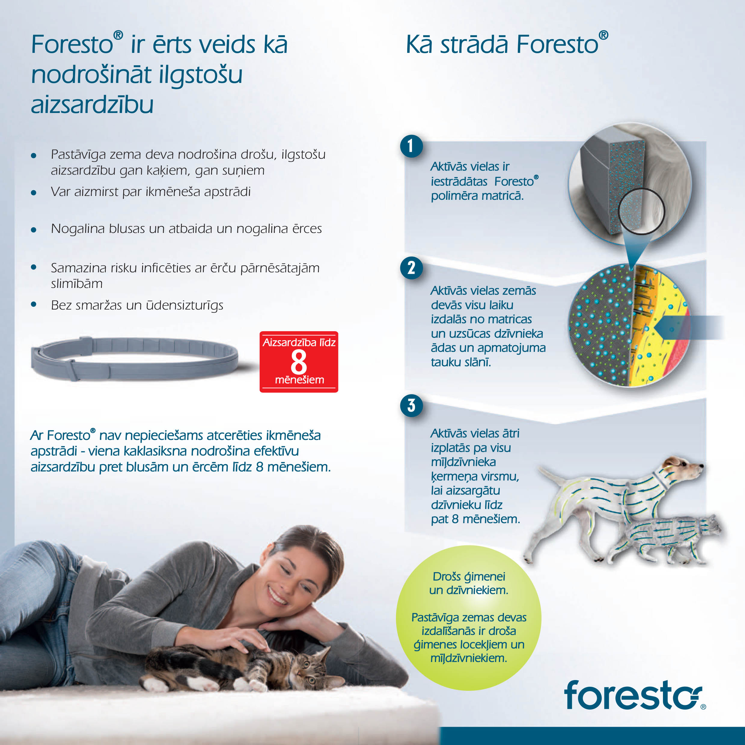 Foresto ir ilgstošas aizsardzības kakla siksna kaķiem un suņiem pret blusām un ērcēm.