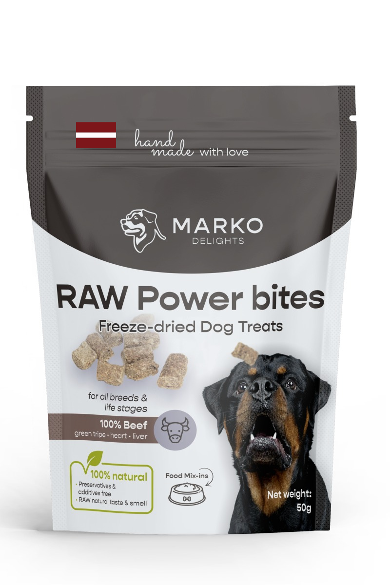 Liofilizācijas procesā tiek saglabāta dabīgā garša, uzturvielas un svaigs aromāts, kas padara RAW Power Bites īpaši iecienītus arī izvēlīgāku suņu vidū.