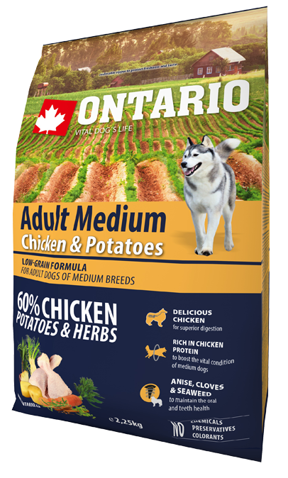 Barība suņiem – ONTARIO Adult Medium Chicken and Potatoes